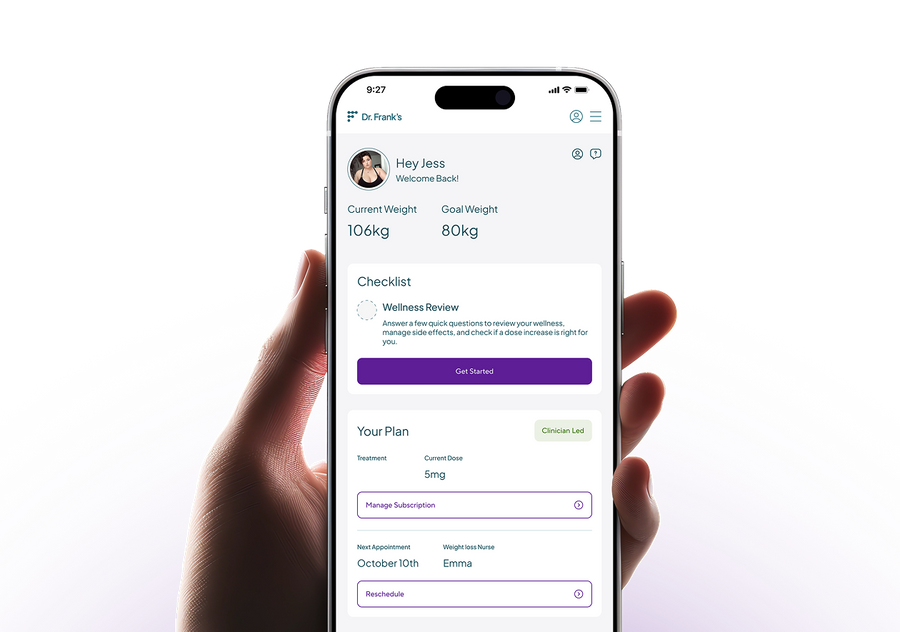 Make the most of unlimited support - we’re with you every step of the way and want you to make the most of your weight loss medication. You can expect regular progress assessments with our team of specialists to ensure you’re on track. We understand that one size does not fit all, so we allow for rapid dosage adjustments to give you the best chance of success.